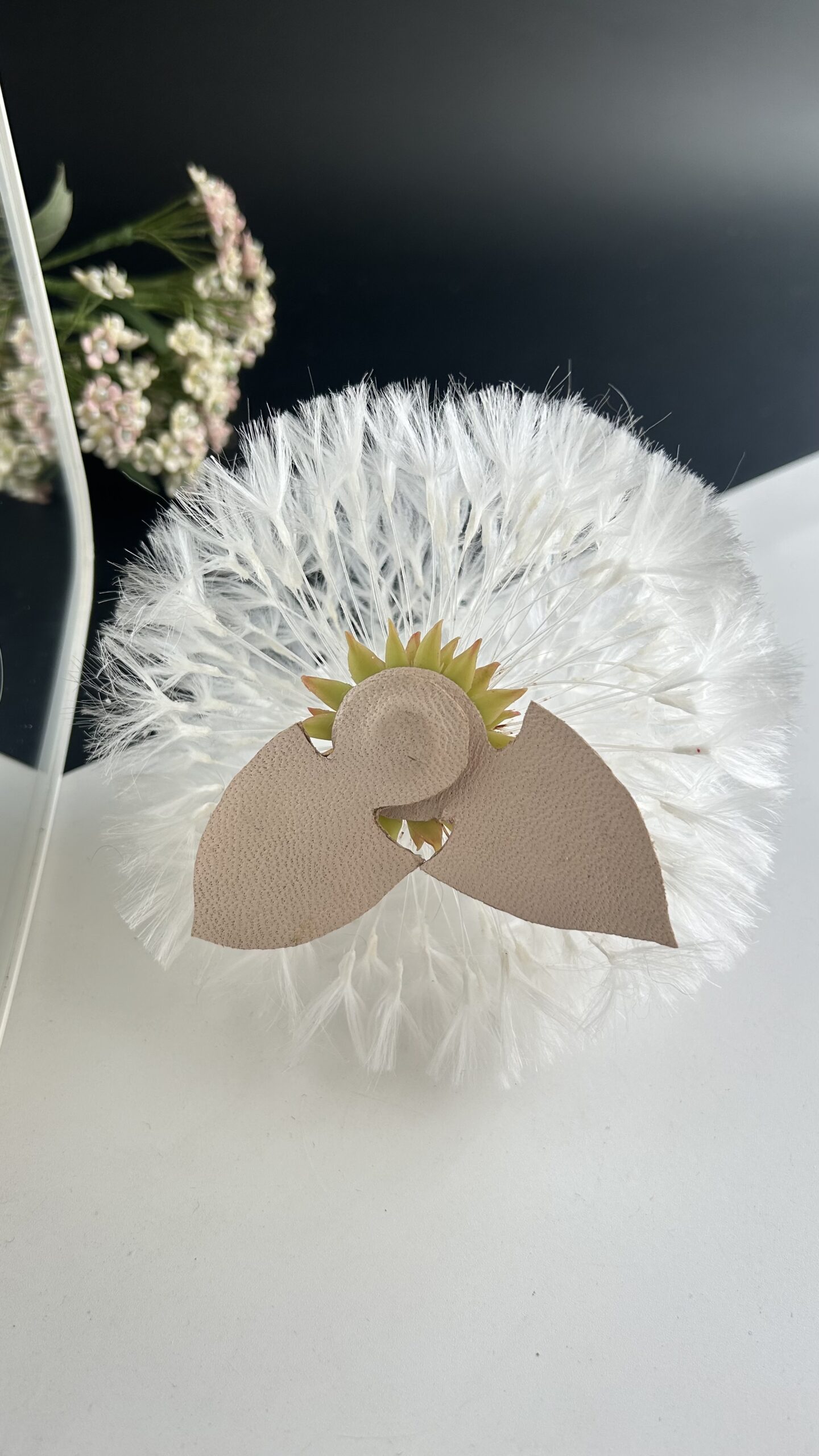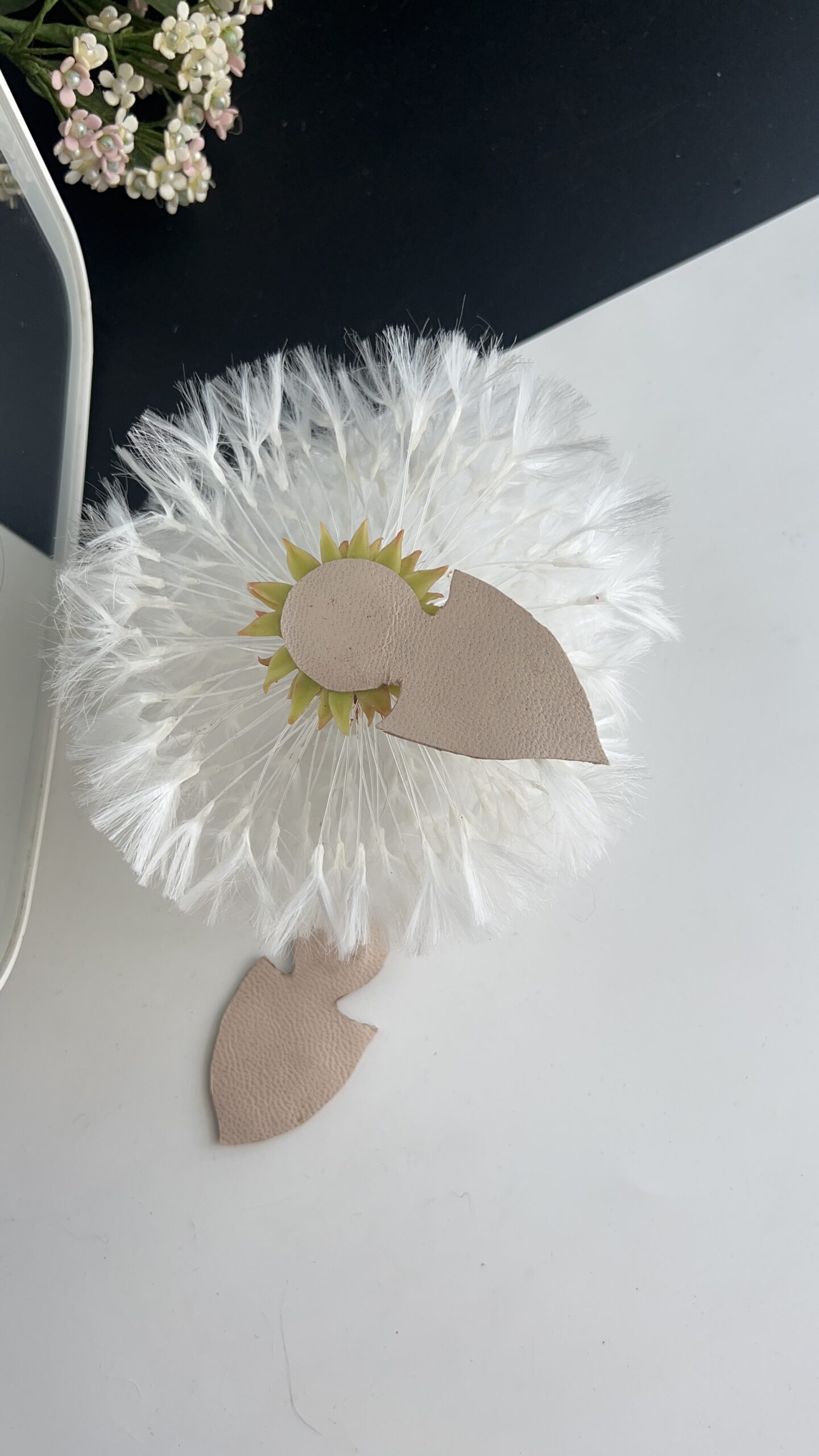 Брошь с белыми одуванчиками добавит нежнейшие акцент вашему образу.Брошь великолепно подойдёт как женскому так и мужскому образу.Диаметр цветка 11 смКрепление неодимовый магнитРучная работа. С любовью к Вам Елена.