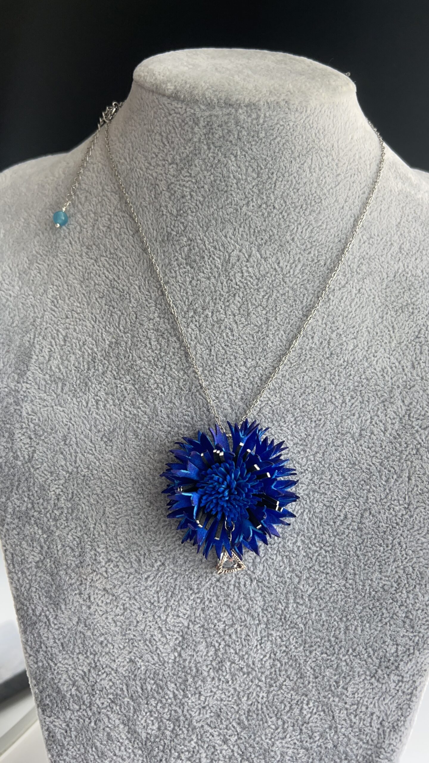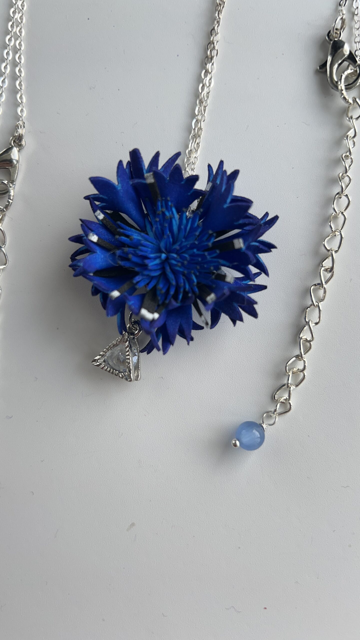 Любимый сердцу Василек в виде кулона. Диаметр василька 4 см. Материал цветка фоамиран. Цепочка -латунь. Длина 49 см+ 7 см удлиняющая цепочка. Подвеска -хрусталик в виде глаза. Ручная работа. С любовью к вам Елена.