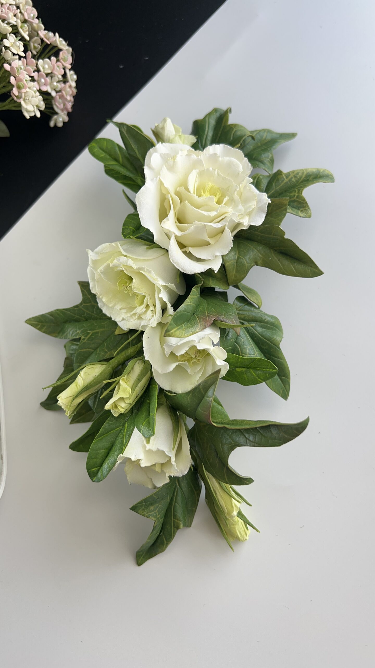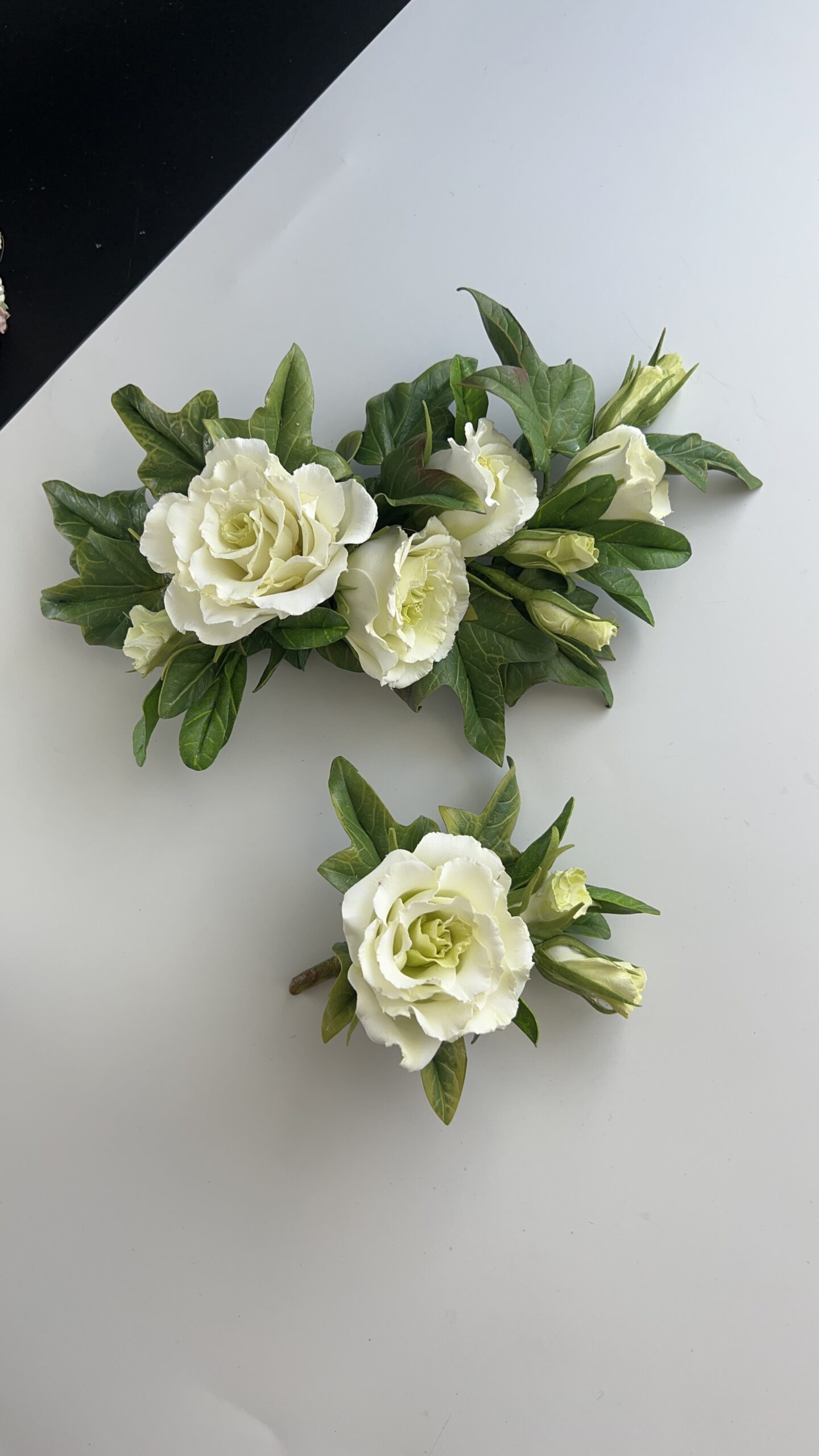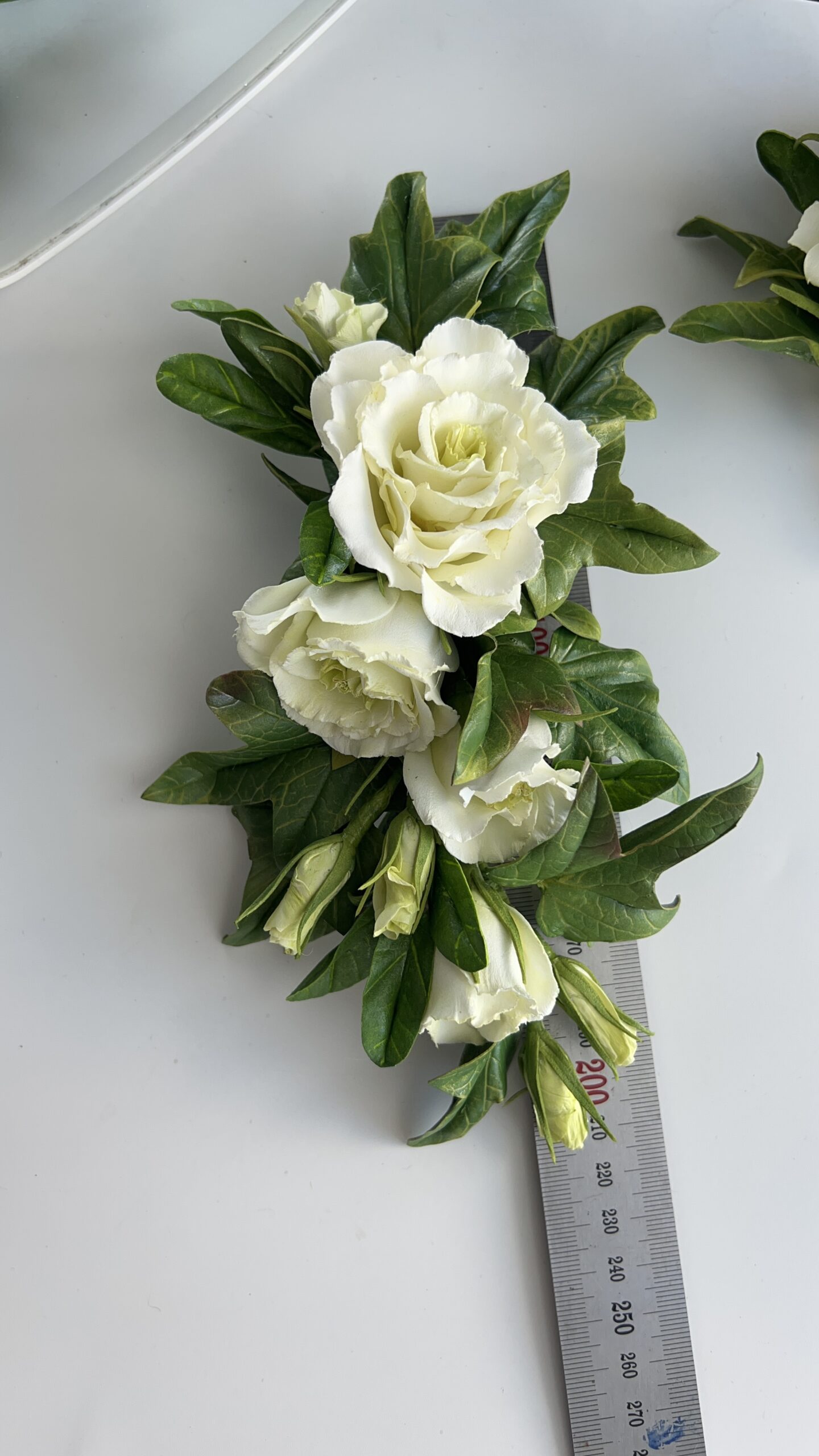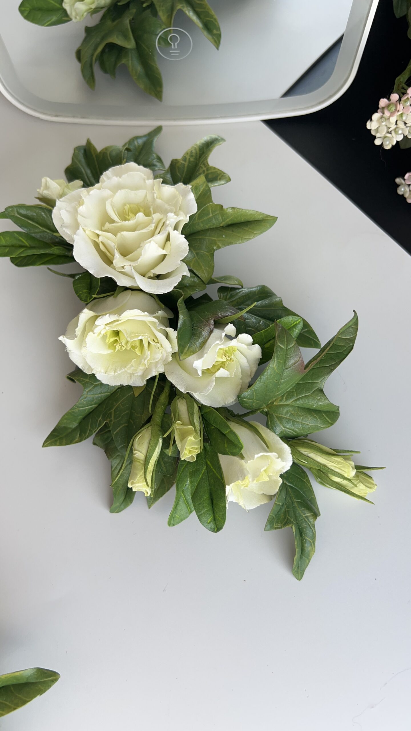 Нежные цветы эустомы в свадебных украшениях Заколка для волос.длина 21 см в длину. Основа металический зажим 7 см длина. Бутаньерка исполнена в стиле заколки. Цветы и листья на проволочной основе , что даёт возможность изменять их расположение. Ручная работа. С любовью к Вам Елена.